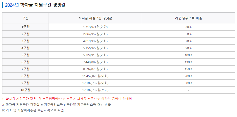 학자금 지원 구간(소득분위) 8구간 이하면 신청하실 수 있습니다